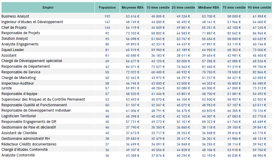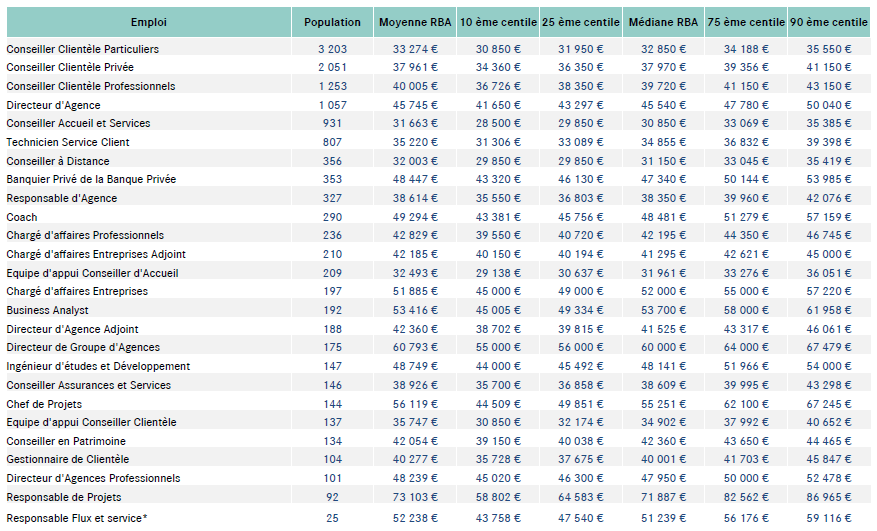 Le décilage des rémunérations brutes annuelles par emploi est indiqué ci-dessous :