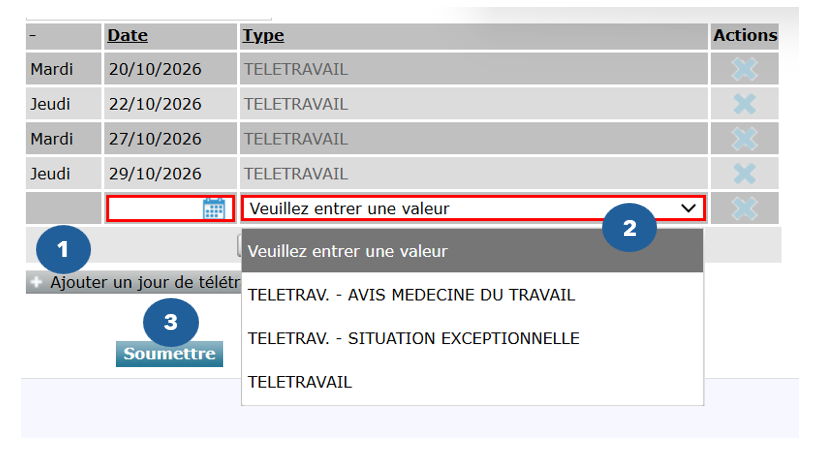 Vous devez ensuite saisir le ou les jours de télétravail concernés.